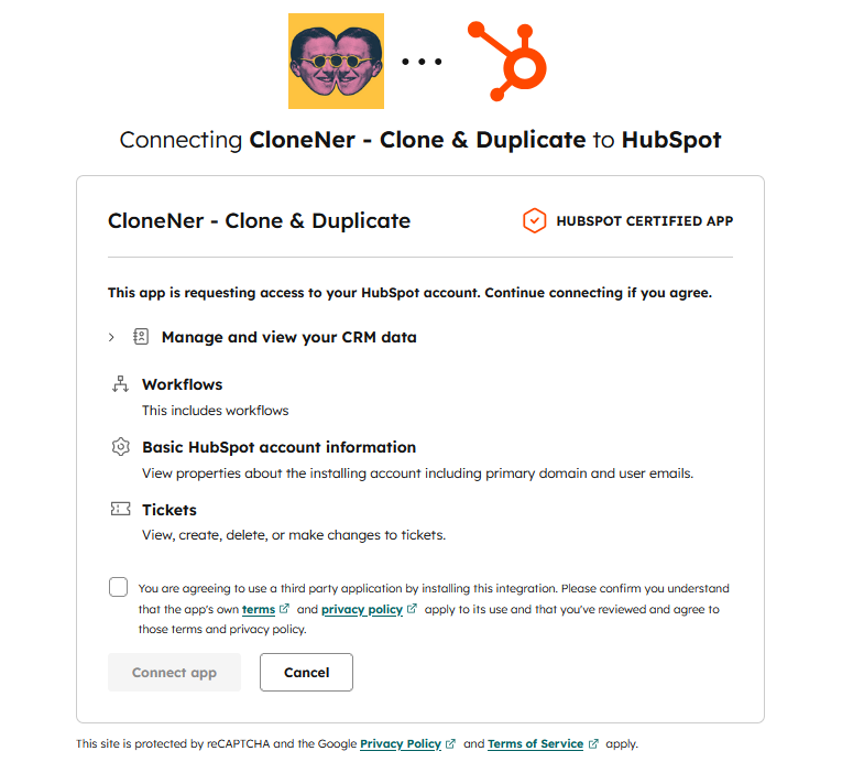 Follow these steps to install CloneNer for your HubSpot account: