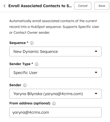 Automatically enroll HubSpot contacts in sequences with a dynamic sender