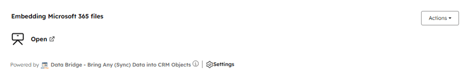 Microsoft Office content is essential to many daily workflows inside HubSpot. Data Bridge brings Office files directly into your CRM records through simple link-based embedding. Excel, Word, and PowerPoint documents become accessible in context, creating a smoother workflow and reducing time spent searching for files.