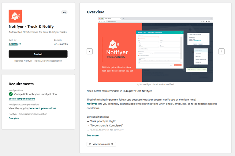 - Navigate to HubSpot Apps Marketplace and find Notifyer.