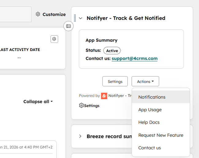 Above, you can see how to access the Notifyer Card within your deal record, and now you can read more about how to use the app itself.