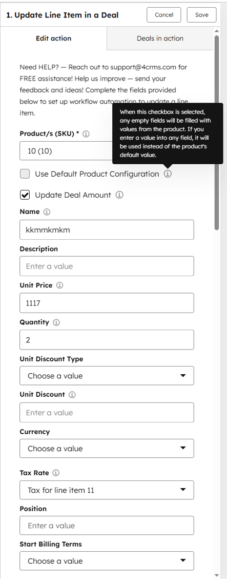 - Ability to use the Default Product Configuration and fill empty fields with values from the product.