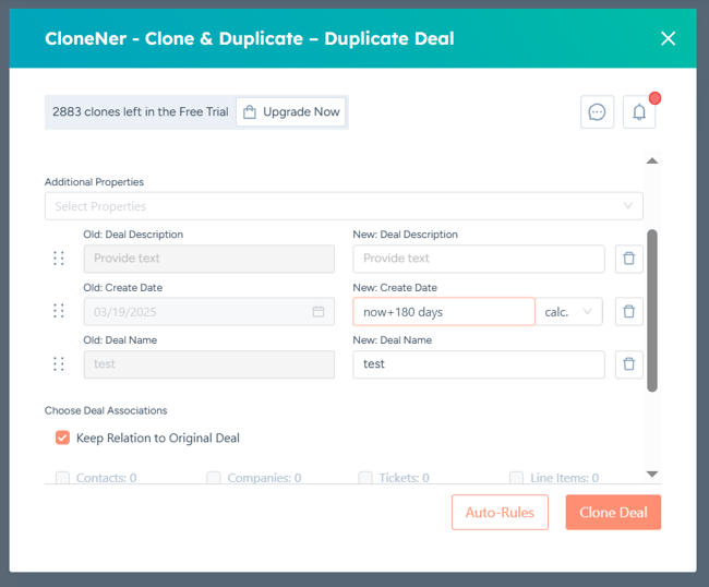 - The ability to choose which associations should be linked to the duplicated deal.